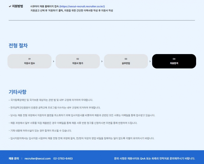 채용 홈페이지 : https://secui-recruit.recruiter.co.kr/app/jobnotice/view?systemKindCode=MRS2&jobnoticeSn=244597