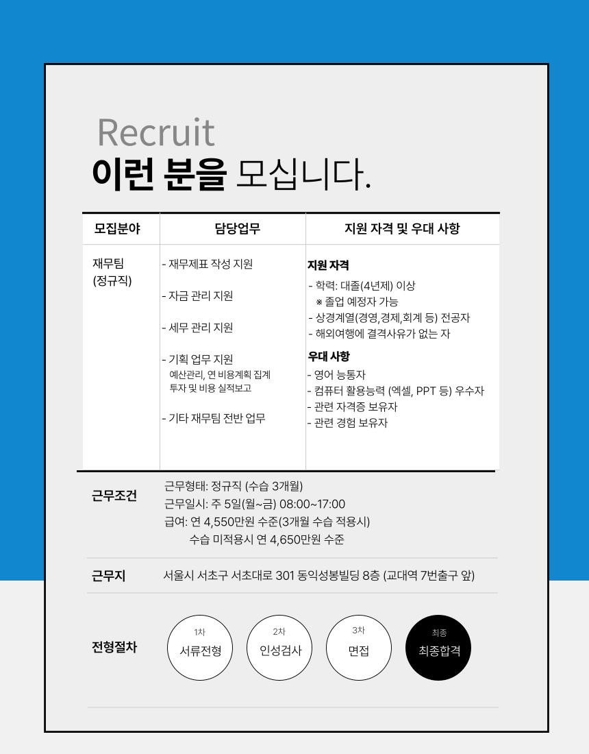 1) 3월 12일까지 아래 담당자 이메일로 입사서류 제출