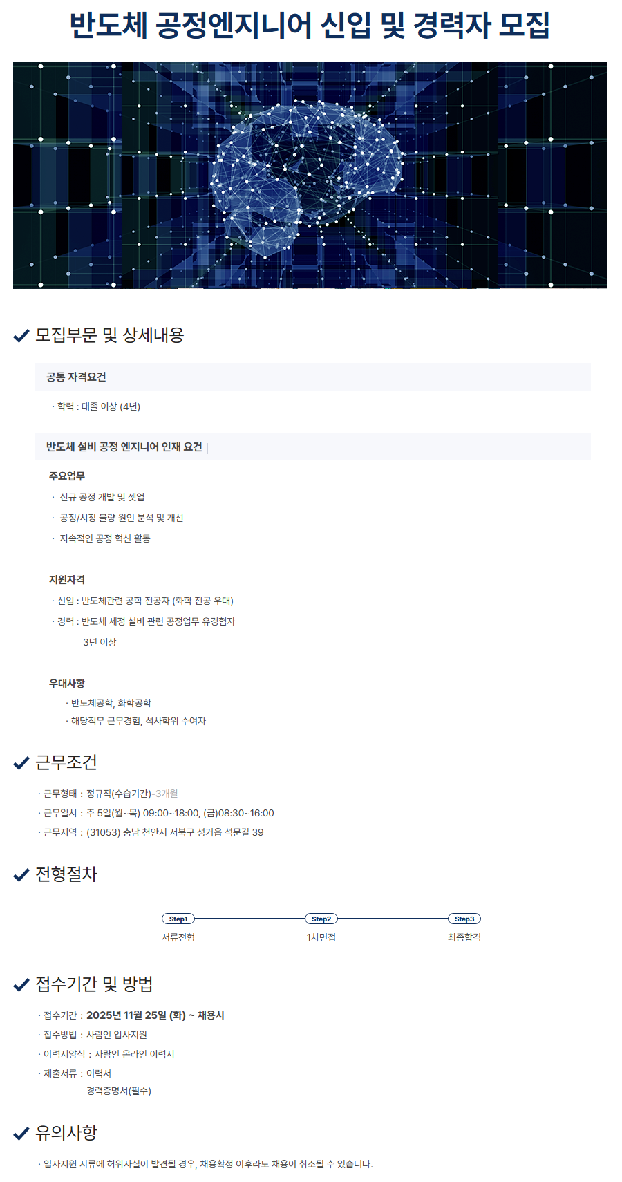 [디바이스] 반도체 설비 공정 엔지니어 신입/경력 모집
