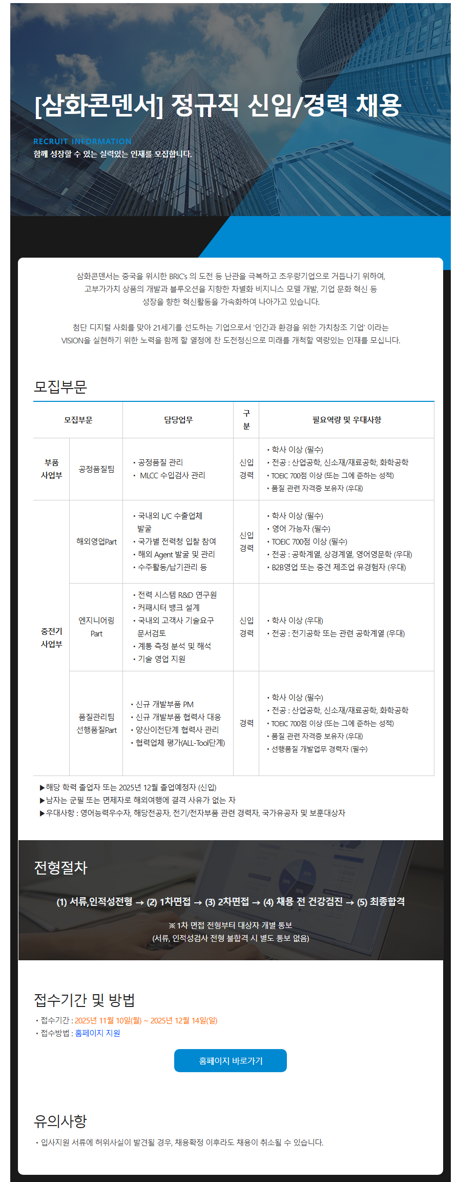 [삼화콘덴서] 정규직 신입/경력 채용