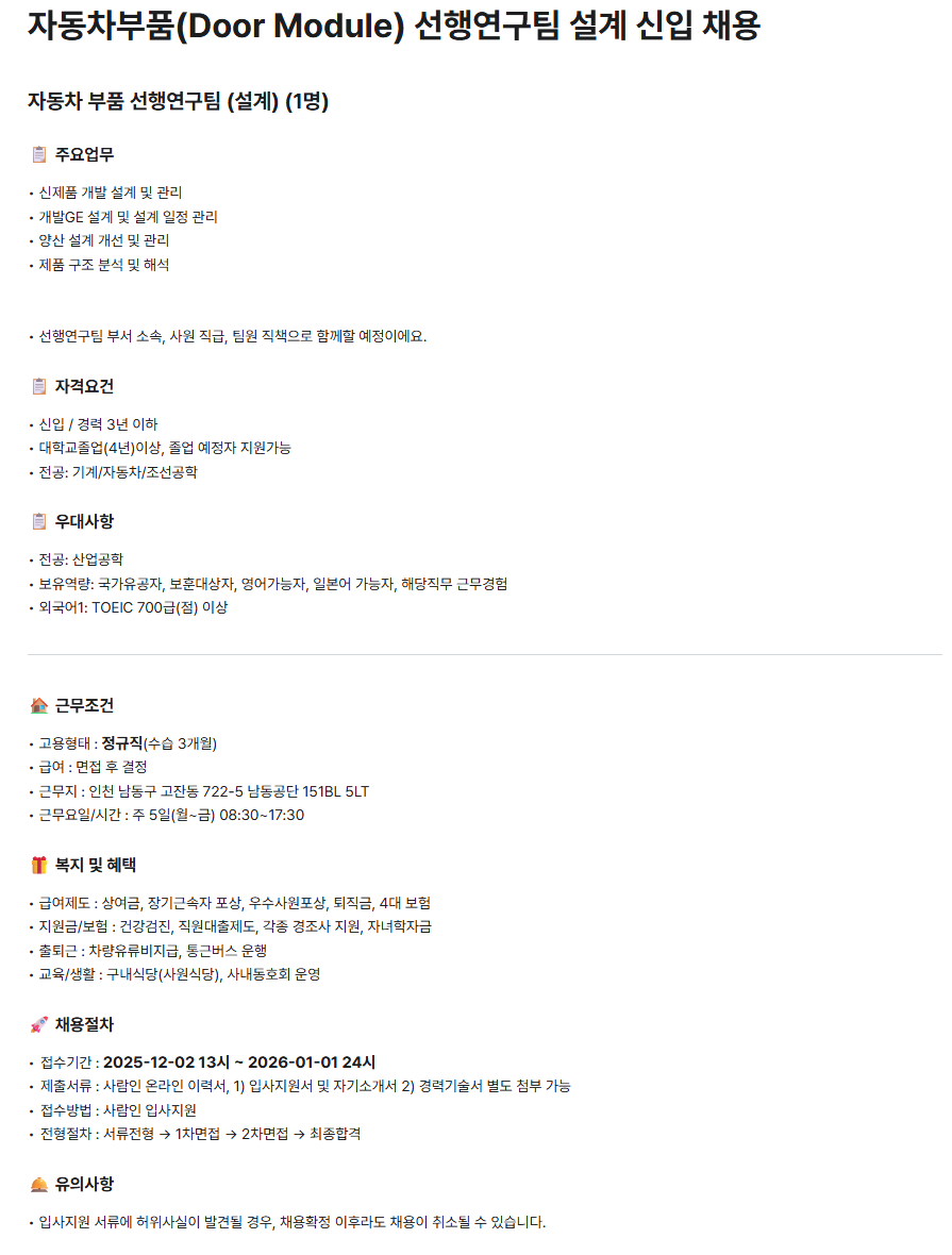 [대동하이렉스] 자동차 부품 선행연구팀(설계) 신입/경력 채용