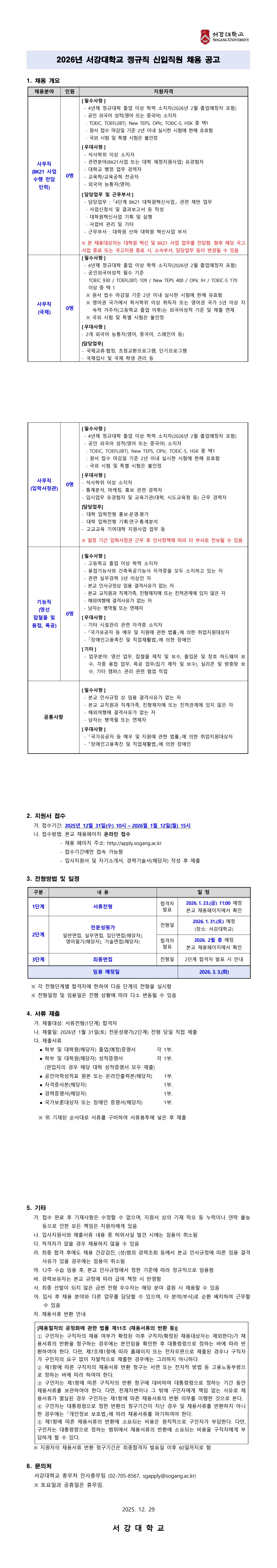 - 지원방법: 채용홈페이지 온라인 접수(http://apply.sogang.ac.kr)