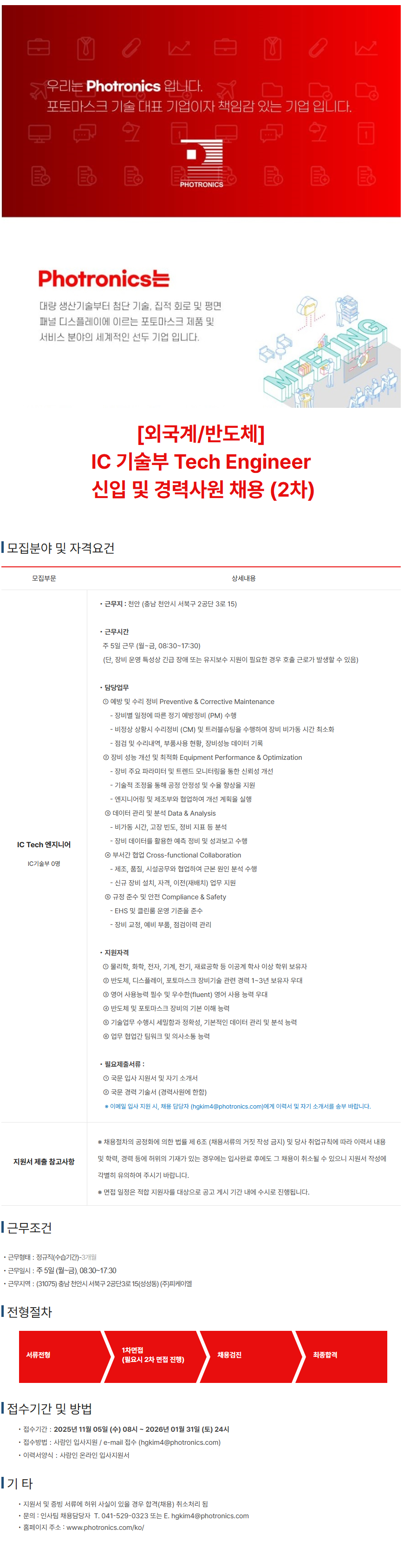 - 지원방법: 사람인 입사지원 또는 이메일 접수 (hgkim4@photronics.com)(https://is.gd/dFJGYK)