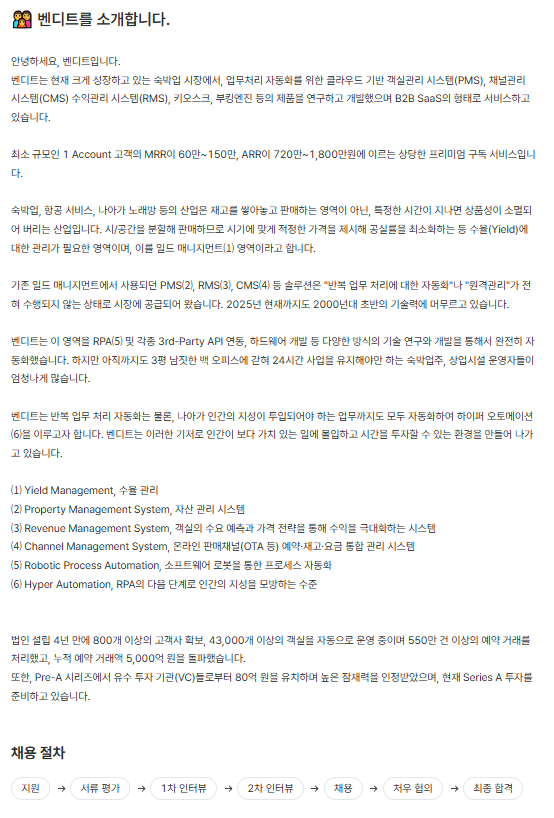 - 지원방법: 채용홈페이지를 통한 온라인 입사지원(https://vendit.recruit.roundhr.com)