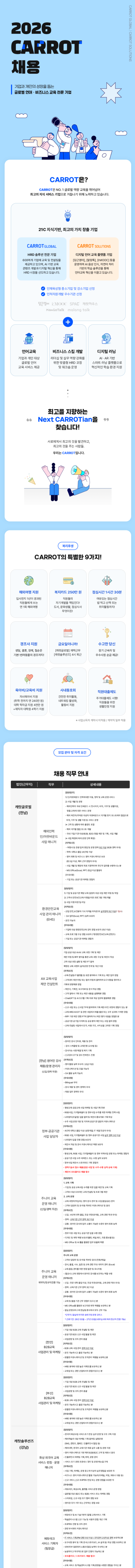 - 지원방법: 채용 홈페이지 지원(https://carrotglobal.com/Recruit)