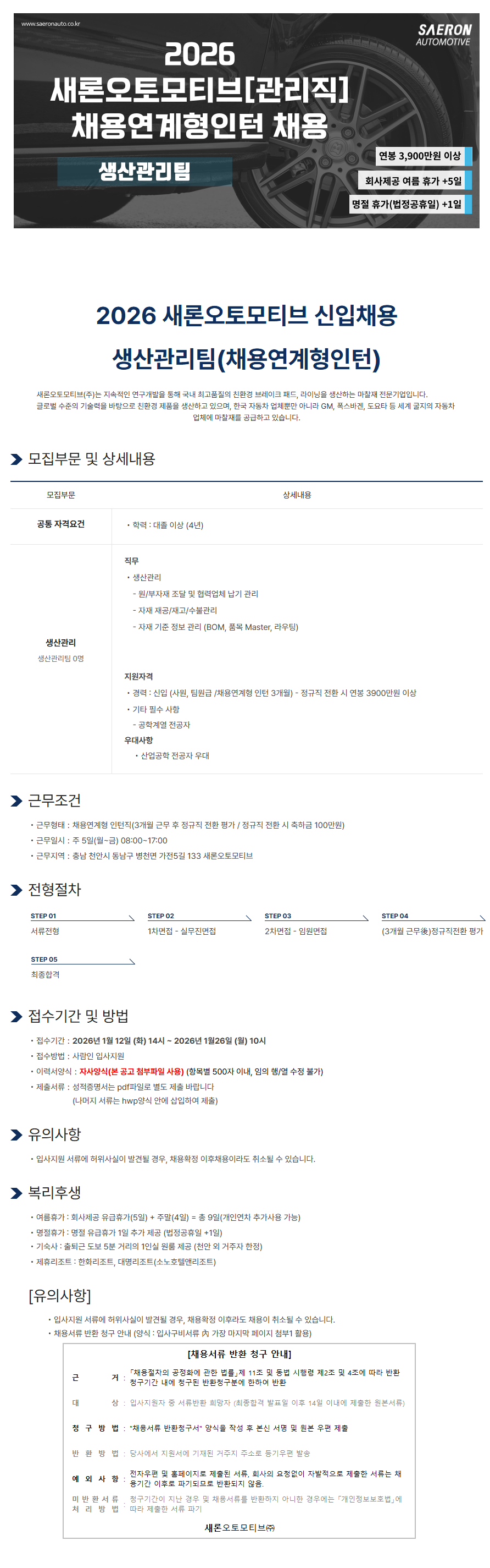 | 기업명 | 새론오토모티브 | 등록일 | 2026-01-14 |