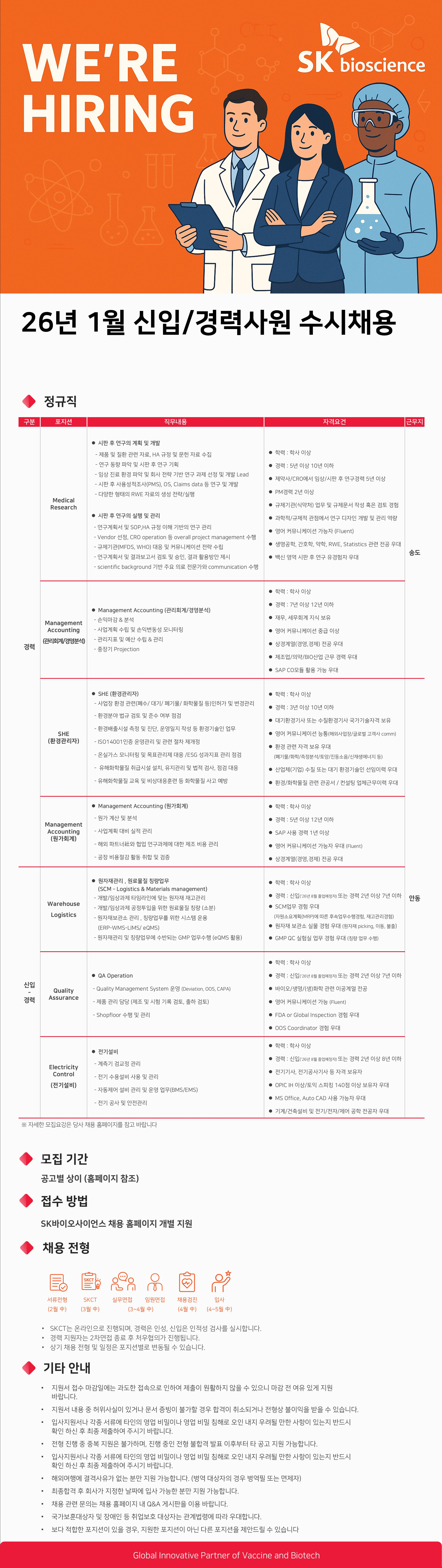 [SK바이오사이언스] 26년 1월 신입/경력사원 수시채용