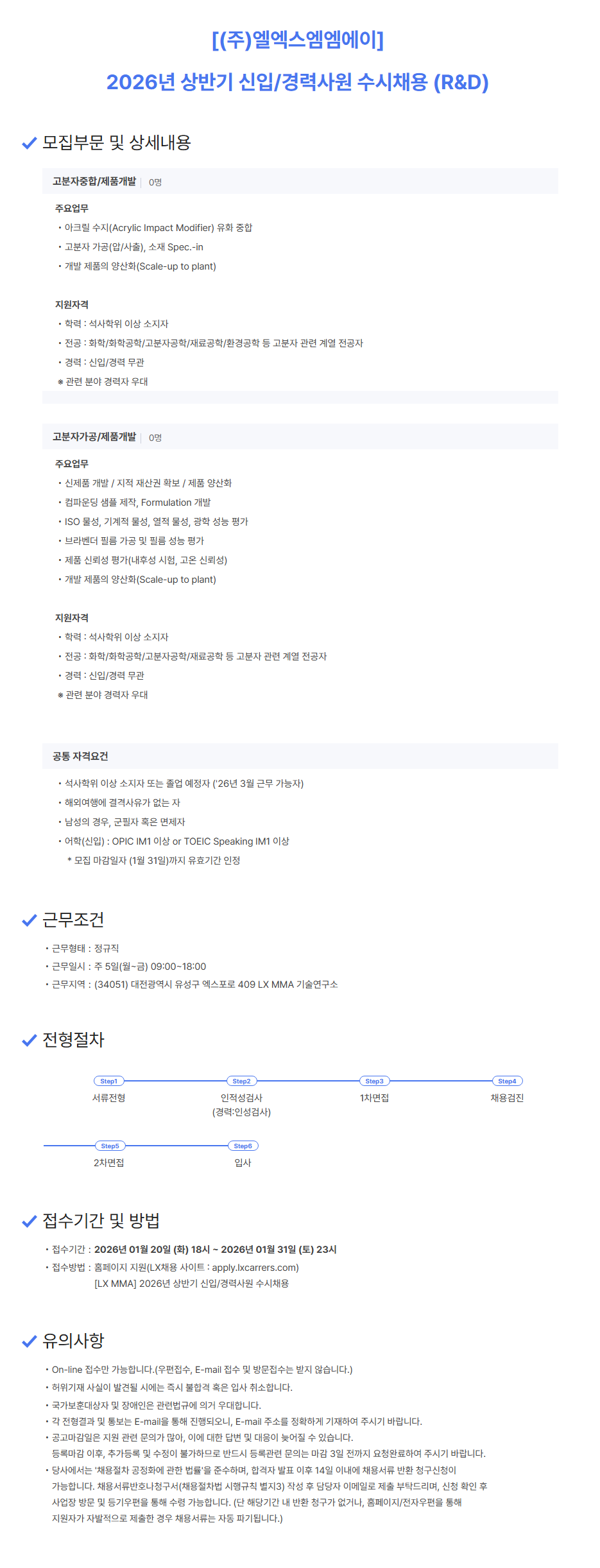 [LX MMA] 2026년 상반기 신입/경력사원 수시채용 (R&D)
