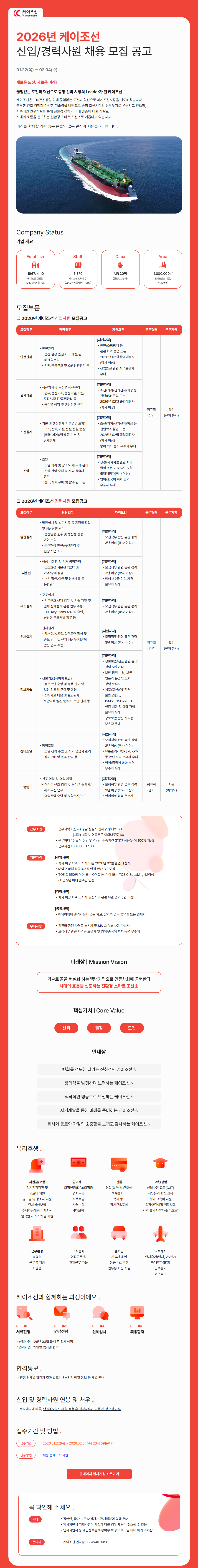 [케이조선] 2026년 신입/경력사원 채용 모집