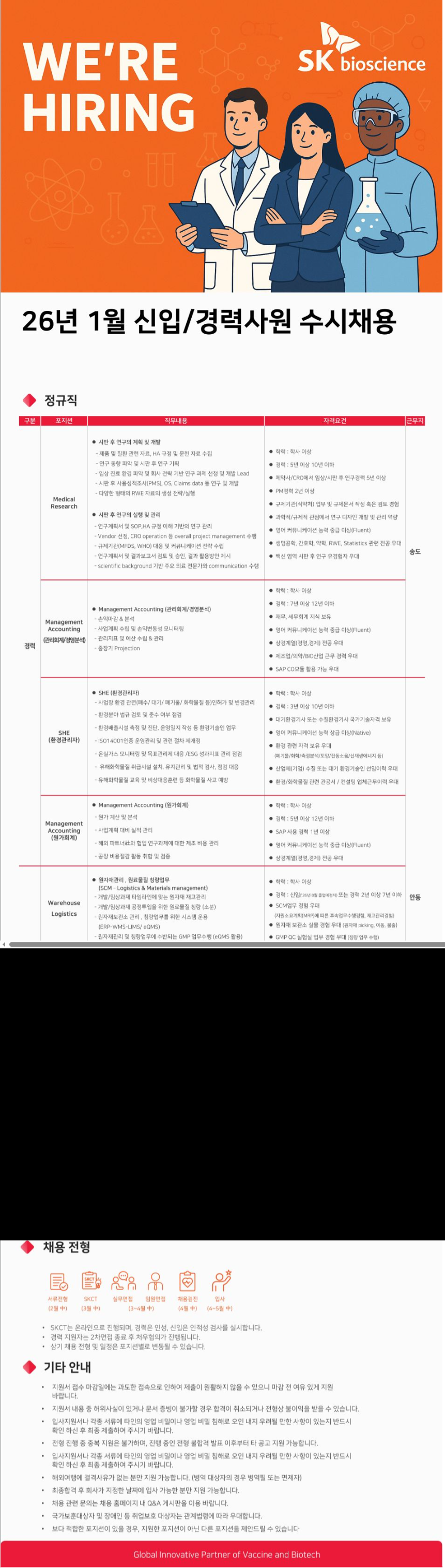 [SK bioscience] 26년 1월 신입/경력사원 수시채용