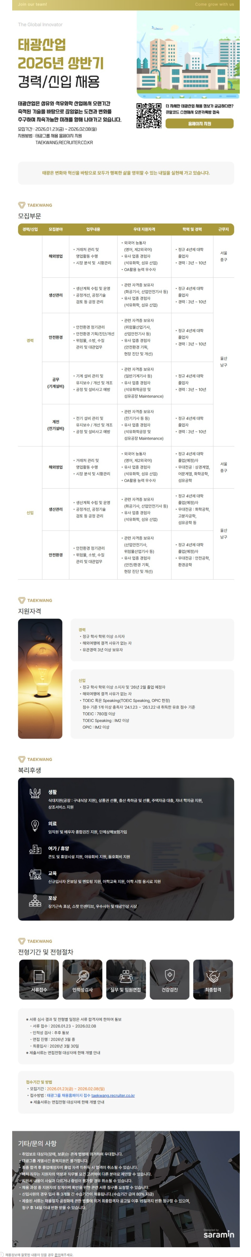 [태광산업] 2026년 태광산업 상반기 경력/신입 수시 채용