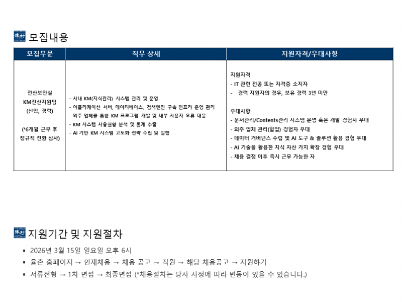 [법무법인(유) 율촌] 전산보안실 KM전산지원팀 채용공고