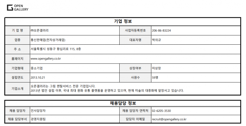 [(주)오픈갤러리] 고객관리팀 채용 공고