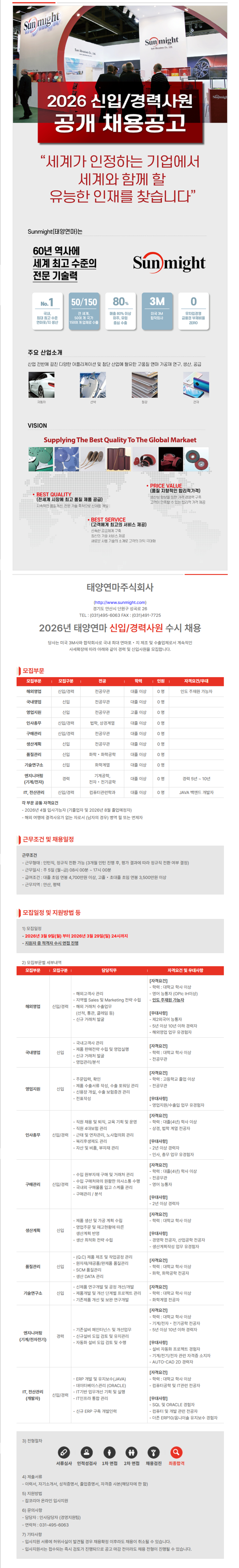 [태양연마] 2026년 태양연마 신입/경력사원 수시 채용