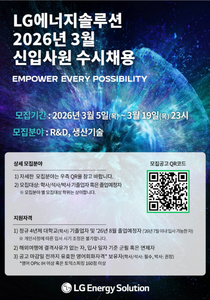[Lg에너지솔루션] 2026년 3월 신입사원 수시채용