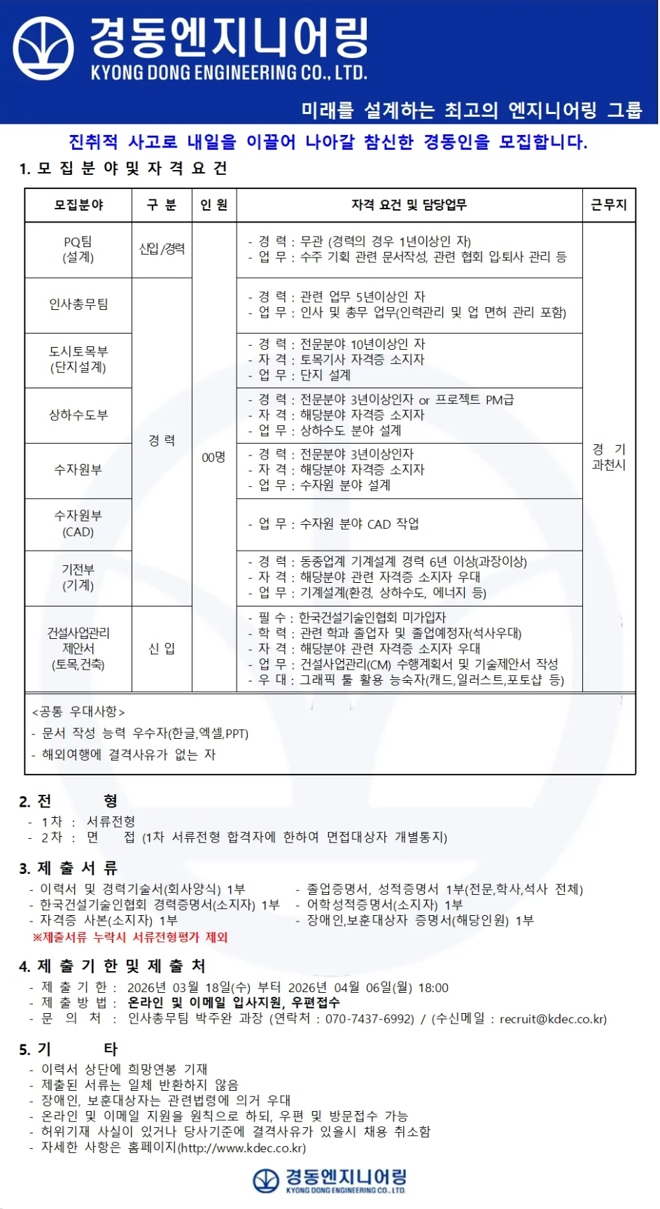 [(주)경동엔지니어링] 신입 및 경력직 모집