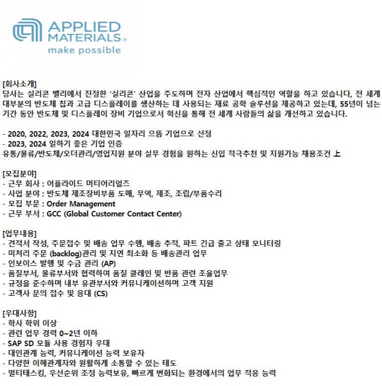 [APPLIED MATERIALS] Order Management 채용