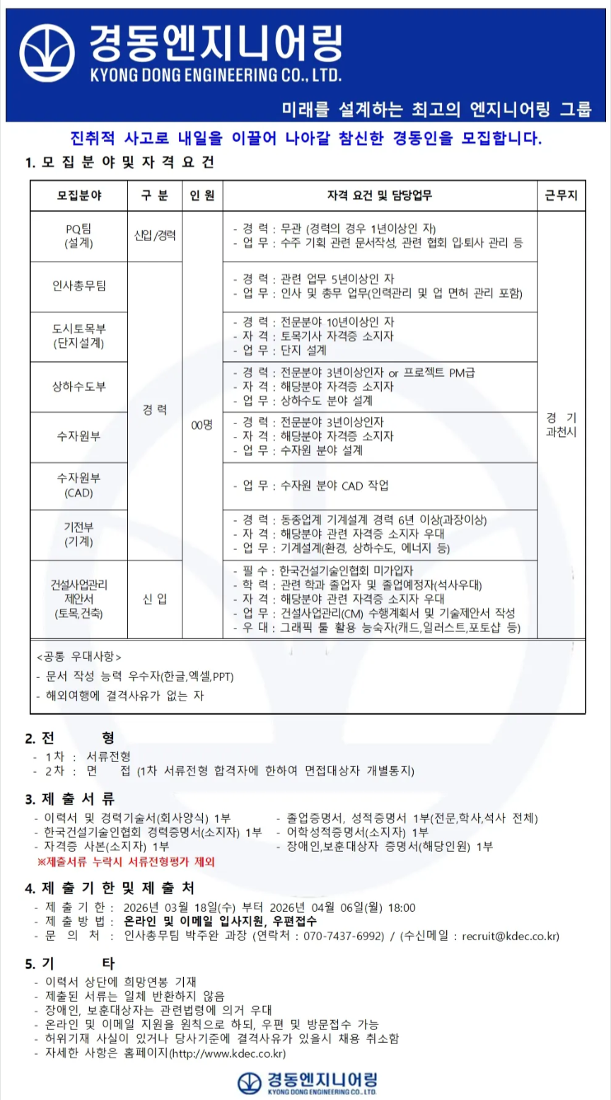 [경동엔지니어링] 2026 신입 및 경력직 모집