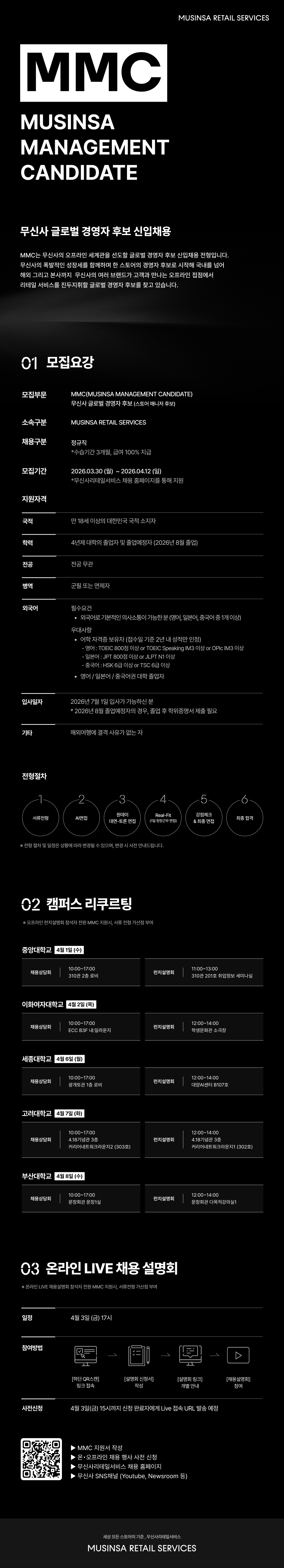 [무신사리테일서비스] MMC 무신사 글로벌 경영자 후보 신입채용
