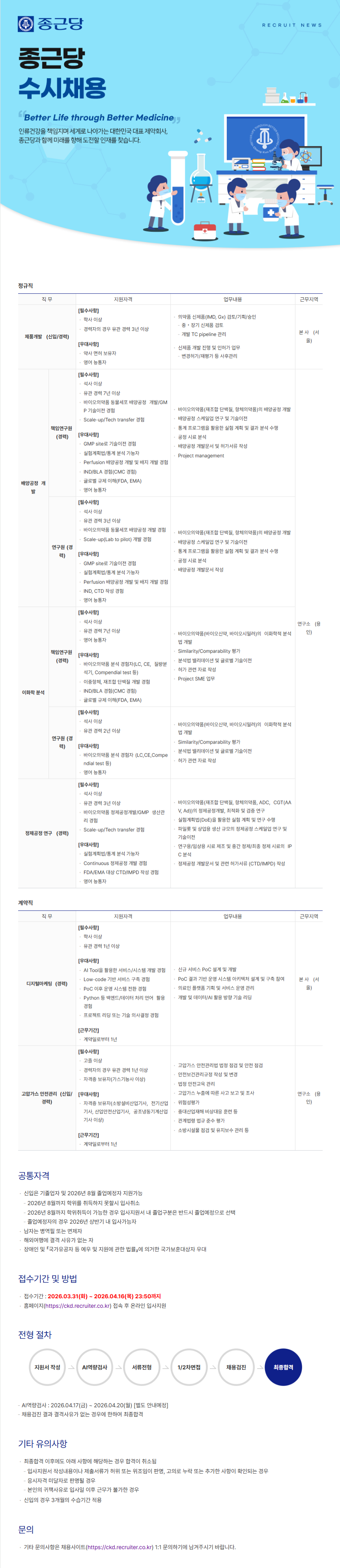 | 기업명 | 종근당 | 등록일 | 2026-04-01 |