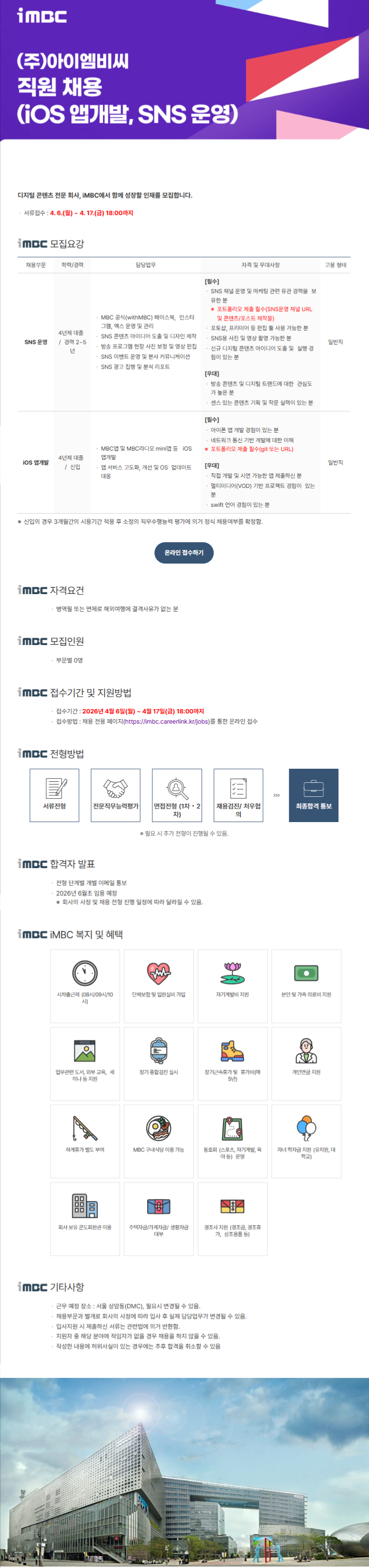 | 기업명 | (주)아이엠비씨 | 등록일 | 2026-04-07 |