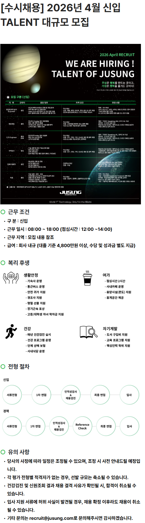 [주성엔지니어링] 2026년 4월 신입 TALENT 모집 공고