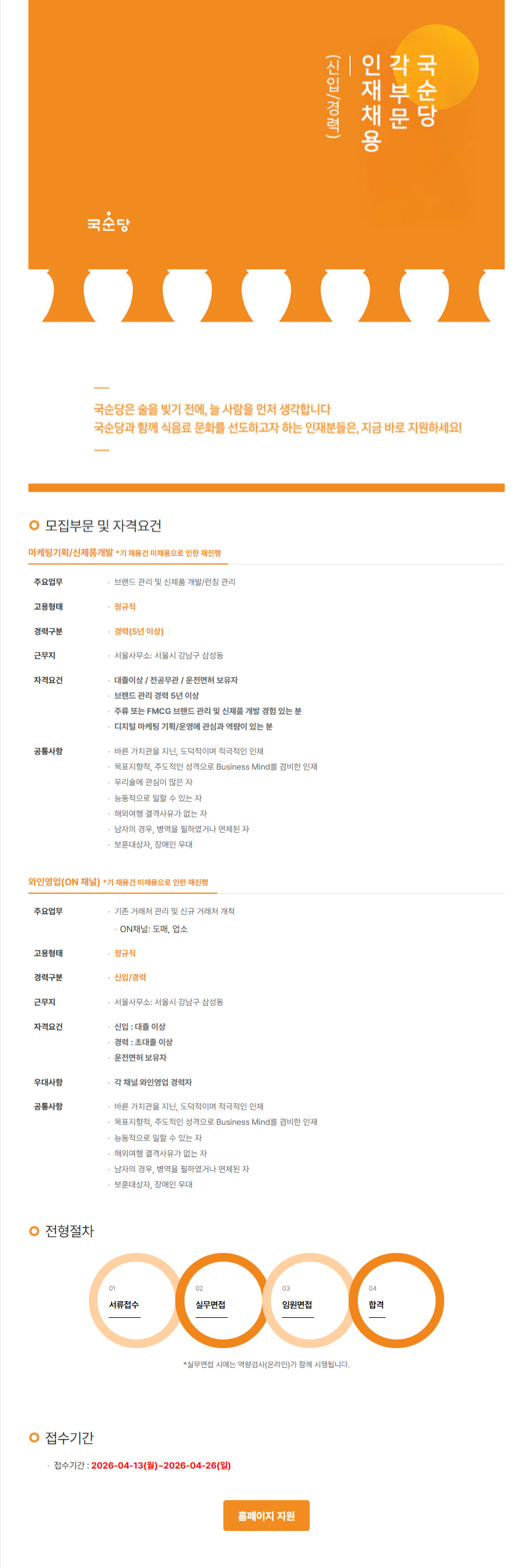 [국순당] 국순당 각 부문 인재채용 (신입/경력)