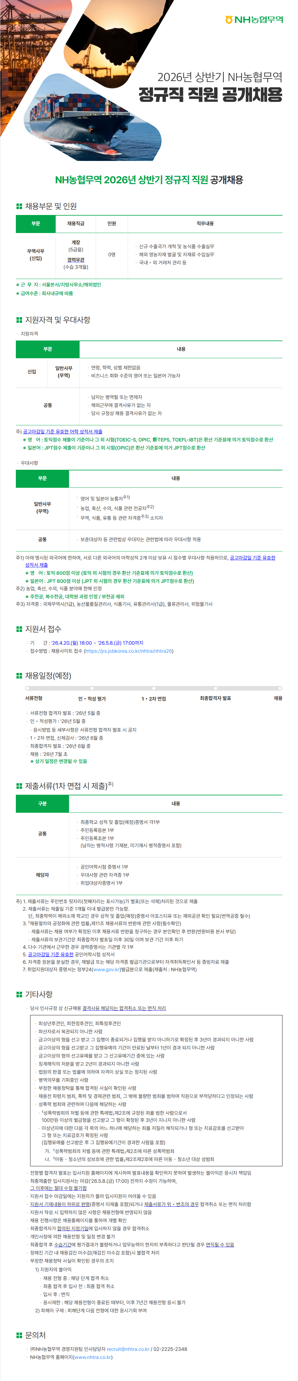 [NH농협무역] 2026년 상반기 정규직 직원 공개채용
