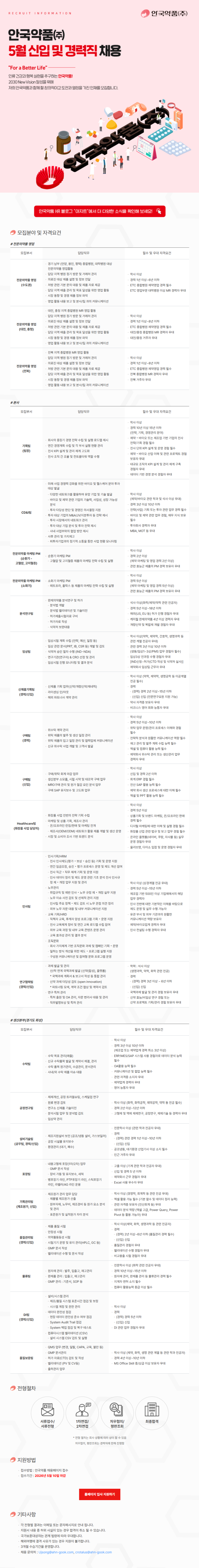 [안국약품] 5월 신입 및 경력직 채용